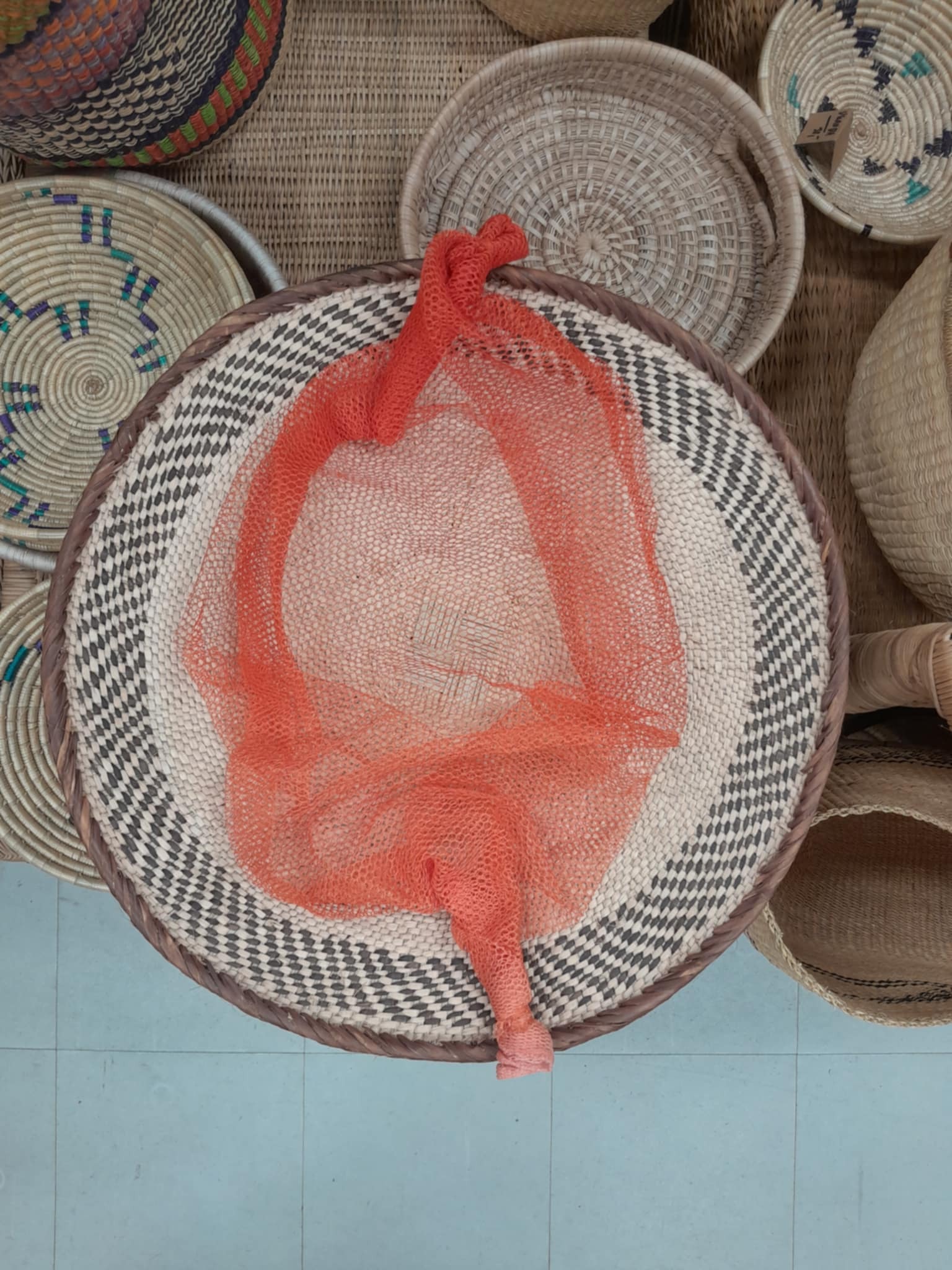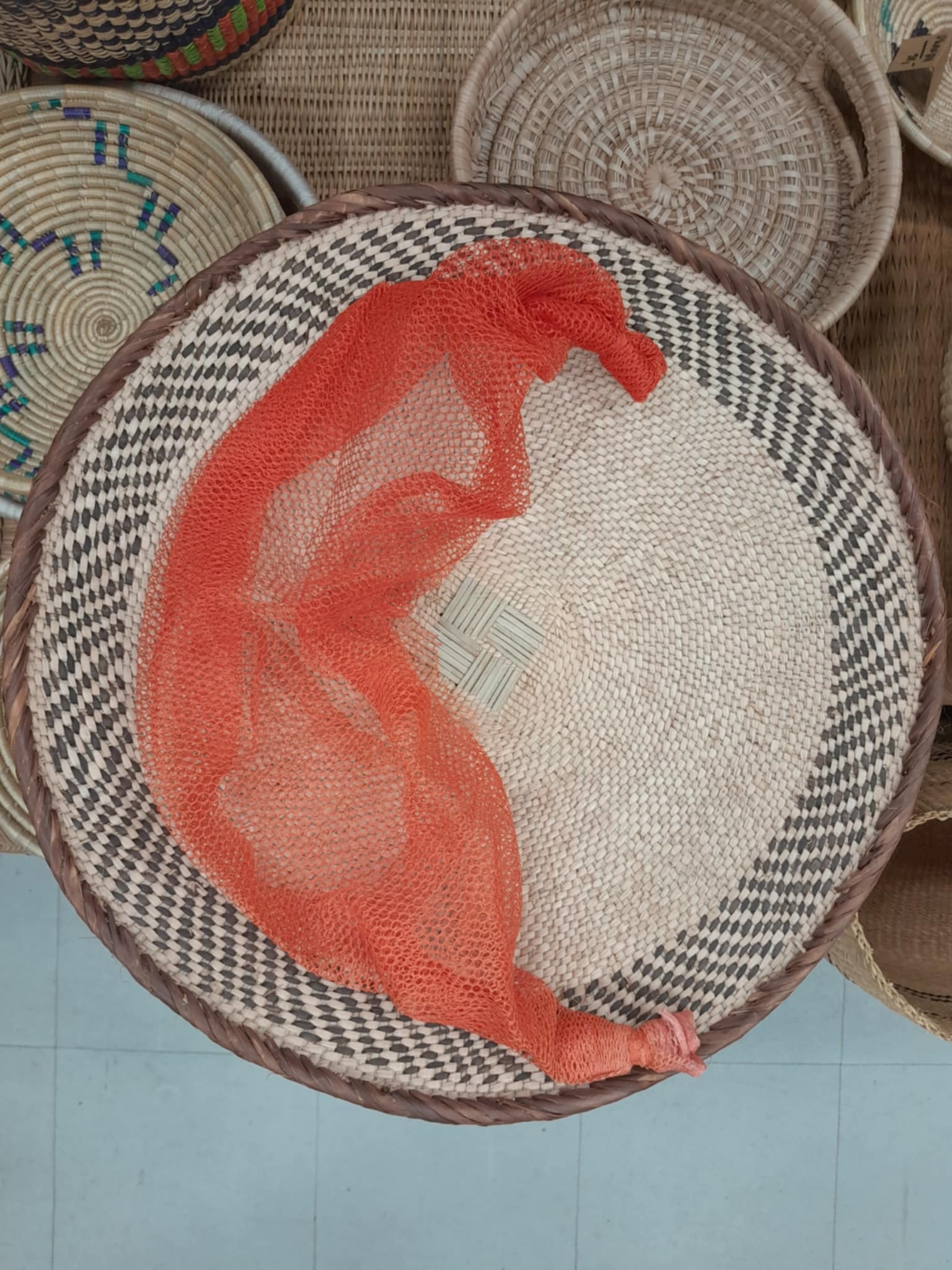 Original, african net sponge. For washing whole body. Can also be used for exfoliating. Colour: red. Material: nylon. Country of origin: Tanzania.