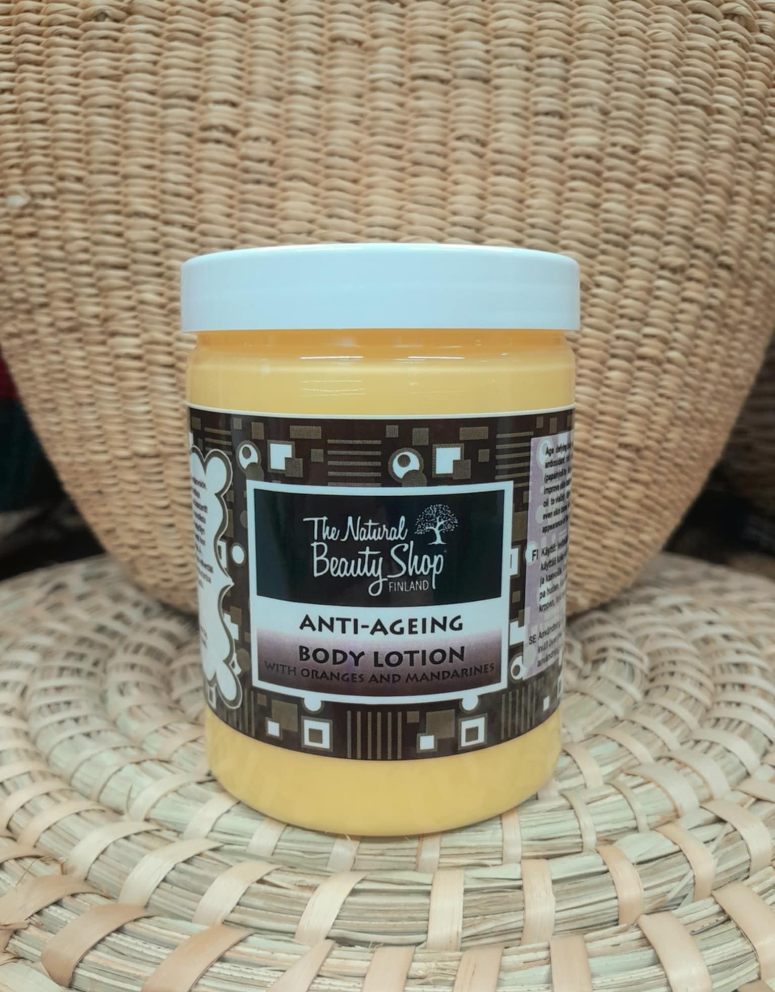 Kosteuttava, erinomainen, ihanantuoksuinen vartalovoide. Imeytyy hyvin, sopii myös käsivoiteeksi, jopa kasvoille. Ainesosat: Aqua, vitellaria nilotica(east african shea butter), carica papaya seed oil, rosa canina fruit oil(rosehip oil), simmonsia chinensis seed oil(jojoba seed oil), tocopherols(vitamin E), incroquat behenyl, perfume(fragrance oil blend), cetearyl alcohol, benzyl alcohol, dehydro acetic acid, sorbic acid and benzoic acid. 300ml. Valmistettu Suomessa. Valmistaja: The Natural Beauty Shop, Finland.