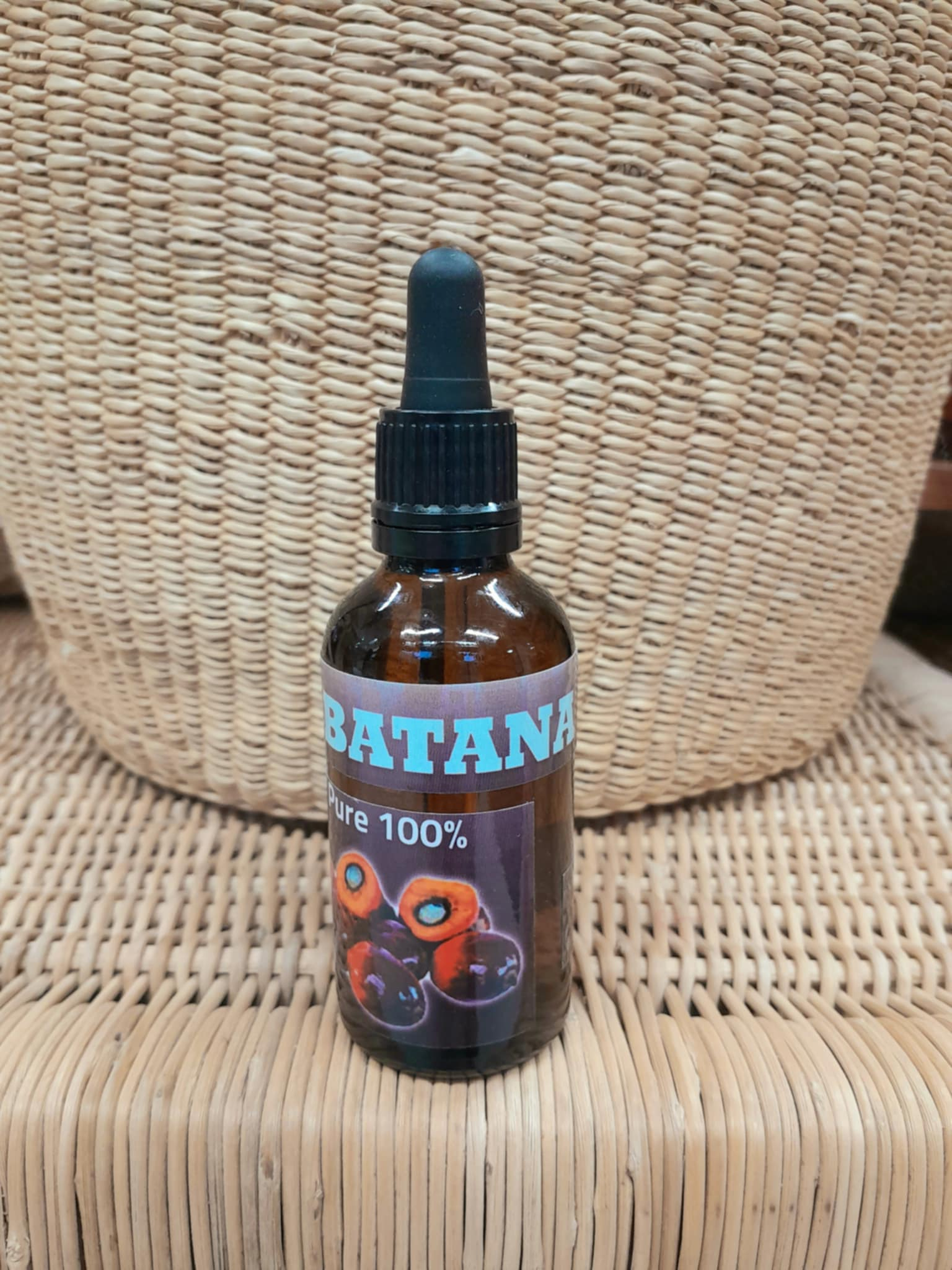 Luonnonmukainen, kylmäpuristettu batana-öljy. Vahvistaa ja korjaa vahingoittuneita hiuksia. Ravitsee ja tuo luontaista tasapainoa myös päänahkaan. Edistää hiusten kimmoisuutta ja kiiltoa. Batana-öljyä on perinteisesti käytetty hiusten kasvun edistämiseen ja kosteuttamiseen. 50ml. Pipettipullo. Pullotettu Suomessa. Alkuperämaa: Honduras. Pullottaja: Natural Beauty Shop Finland.